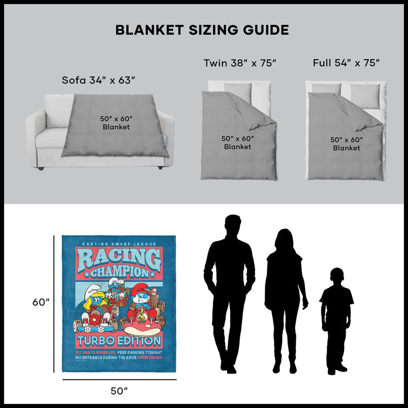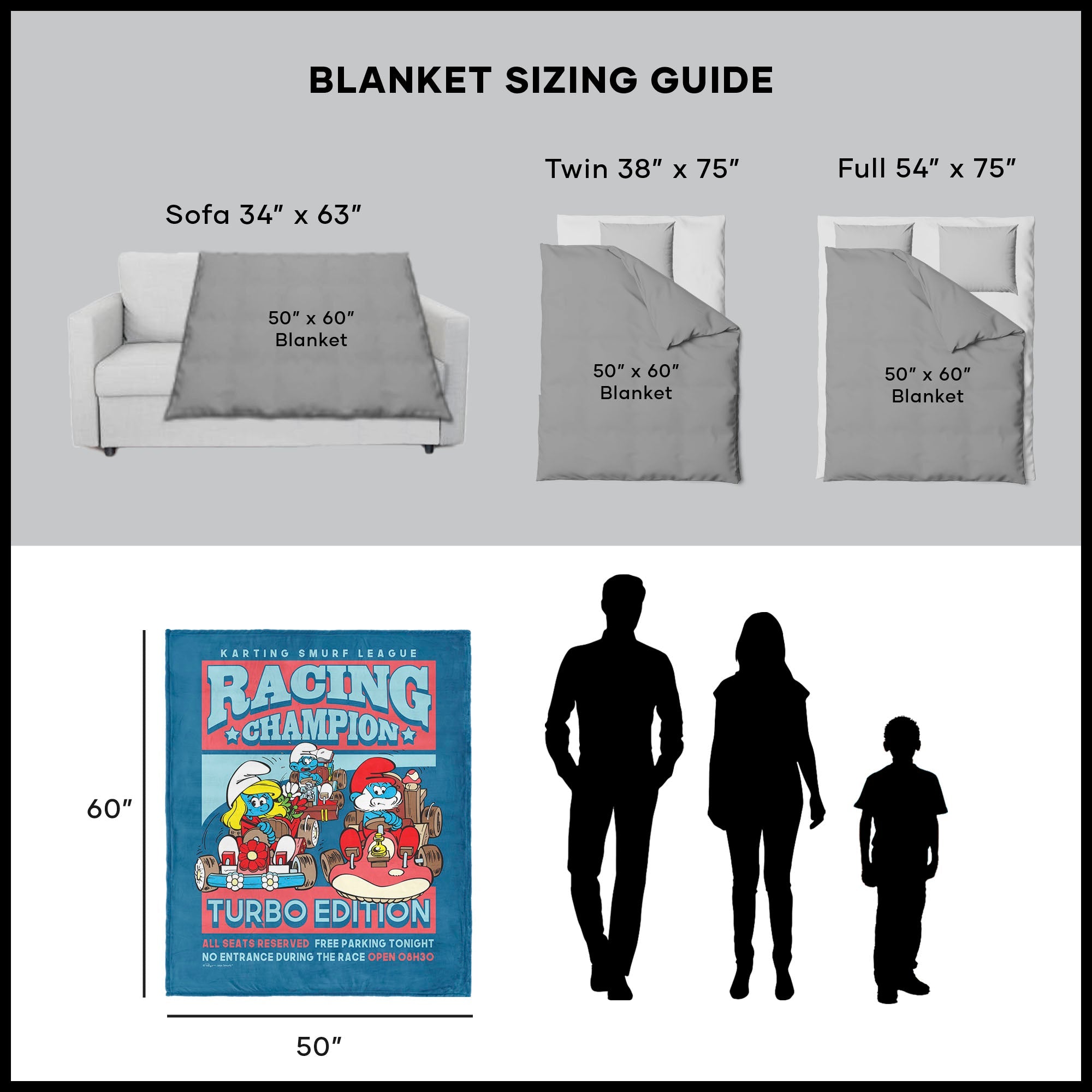 Rev up your style with the Paramount Smurfs ¡°Smurf Racing¡± Silk Touch Sherpa Throw Blanket, featuring Smurfette, Papa Smurf, and their karting crew in a colorful turbo-charged scene. Bold graphics and retro racing vibes make it a standout piece for fans who love speed, fun, and everything Smurf. Perfect for adding a playful energy to your couch, bed, or favorite lounge spot. Crafted from soft, silky fabric, the blanket delivers lightweight warmth and a cozy feel ideal for everyday use. Whether you¡¯re relaxing after a big day or gearing up for a race of your own, the comfort level is set to maximum. Designed for Smurfs fans of all ages, the ¡°Smurf Racing¡± blanket is a nostalgic nod to competition and camaraderie. Ideal for gifting or collecting, it turns every nap, movie night, or quiet moment into a victory lap.