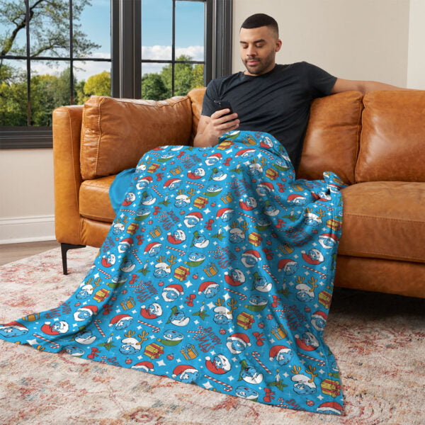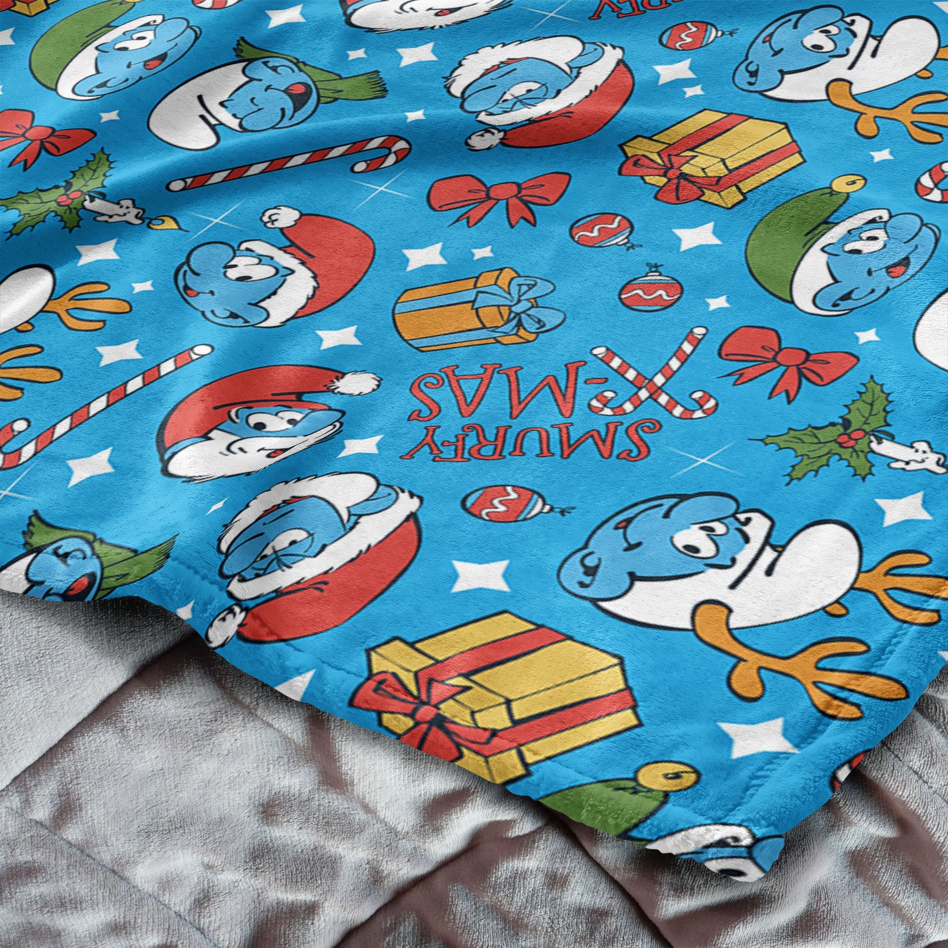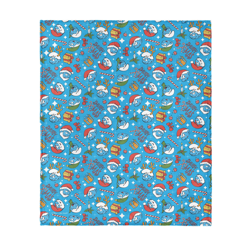 Wrap yourself in festive fun with the Smurfs ¡°Smurfy Xmas¡± Silk Touch Throw Blanket. This vibrant blanket features a repeating holiday pattern filled with the iconic Smurfs, along with festive bows, gift boxes, holly, and other seasonal delights. Its playful design captures the joy and warmth of the holidays, making it a perfect addition to your seasonal d¨¦cor. Made from ultra-soft Silk Touch fabric, this throw provides both comfort and style, keeping you cozy during those chilly winter days. Whether draped over the couch or spread across your bed, the delightful design and luxurious texture make it a perfect companion for relaxing at home or adding a festive touch to any room. Ideal for Smurfs fans and anyone who loves the holiday season, this throw brings a cheerful pop of color and charm to your space. Its lively pattern and soft feel are sure to spread smiles, making it a wonderful gift or personal treat for all ages.
