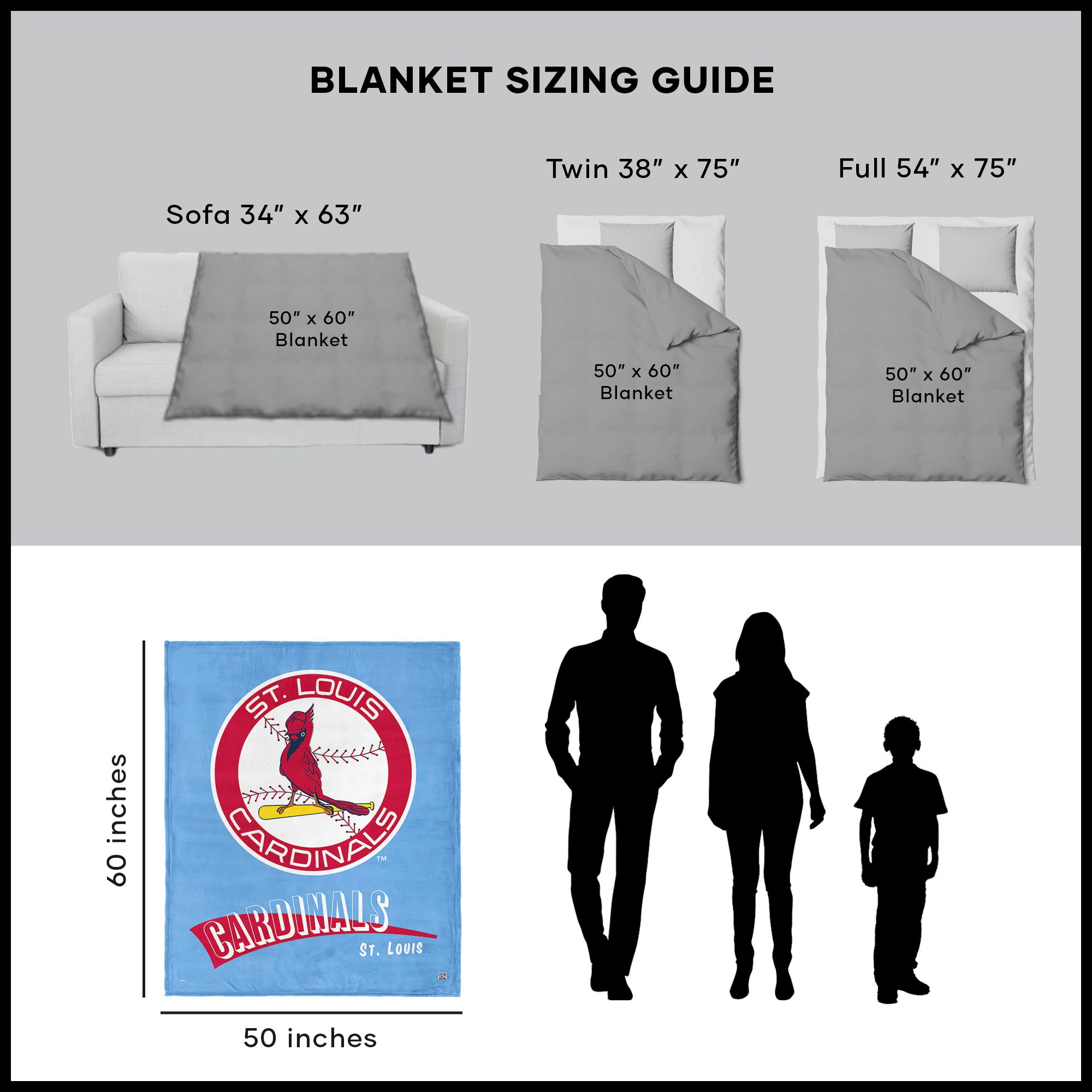 St Louis Cardinals MLB CC Throwback Silk Touch Throw Blanket 50x60 Inches