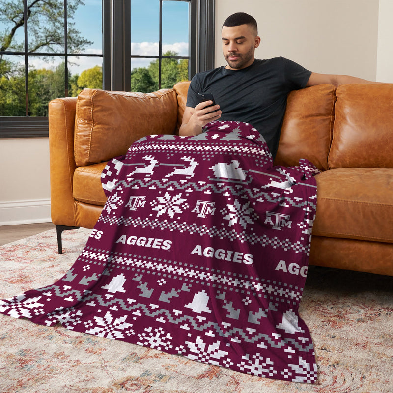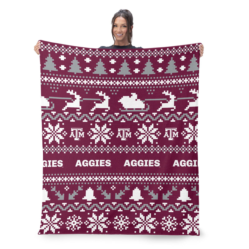 Texas A&M Aggies NCAA Xmas Time Silk Touch Throw Blanket 50X60 Inches