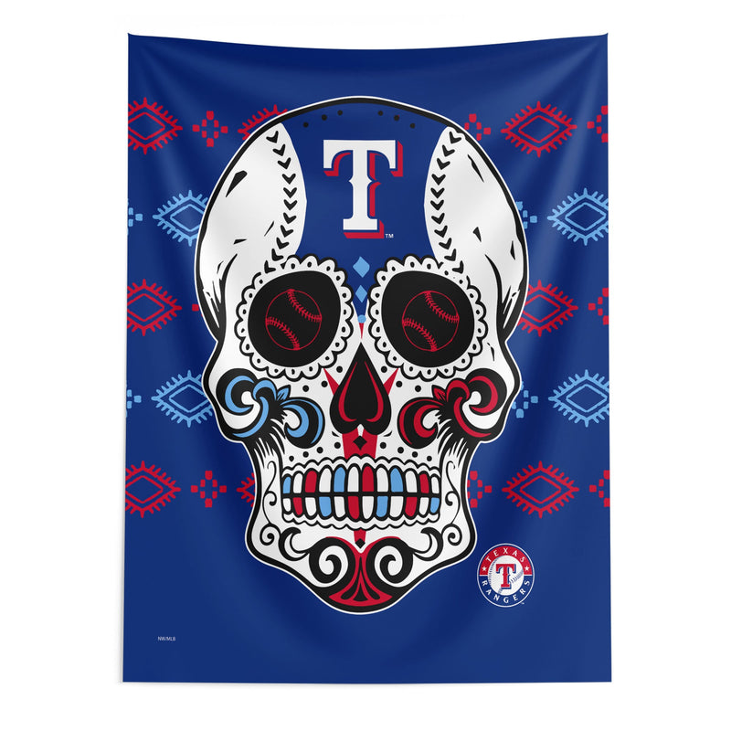 Texas Rangers MLB Candy Skull Wall Hanging 50x60 Inches