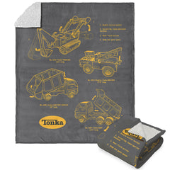 Tonka Hasbro Truck Sketches Silk Touch Sherpa Throw Blanket 50X60 Inches