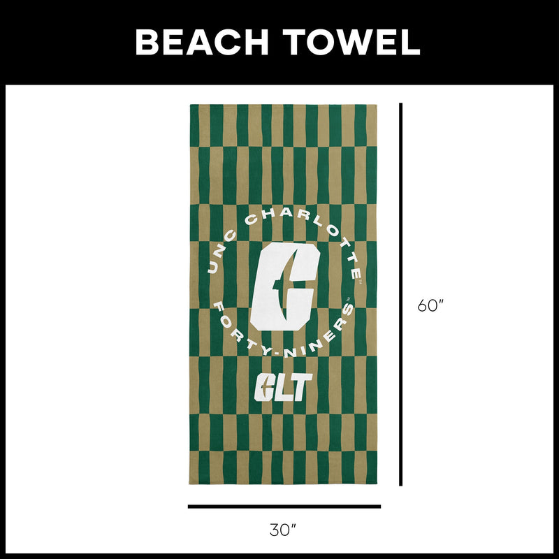 Elevate your game day experience with this UNC Charlotte beach towel proudly displaying your team¡¯s logo and name with vibrant colors. Ideal for beach outings or poolside fun, this towel combines team spirit with a tropical flair. Embrace the sun and sand with this unique and spirited accessory. It makes the perfect gift for the student or alumni in your life or treat yourself to a touch of fandom today.