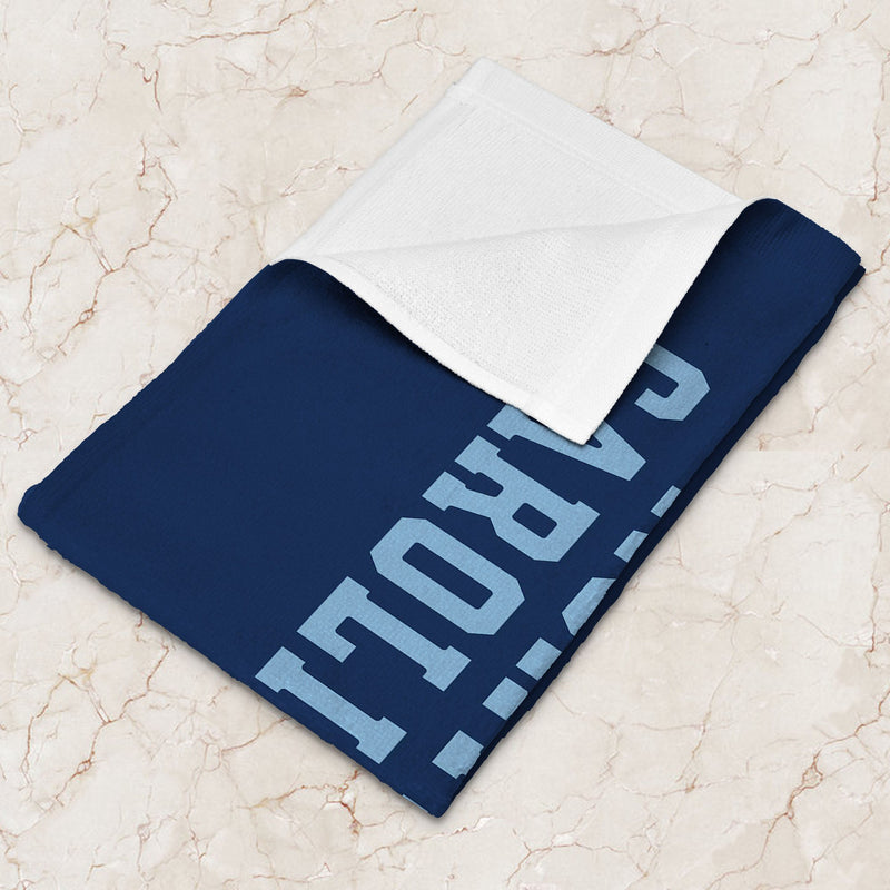 - Features your teams logo on one towel and name on the other both in different school colors.