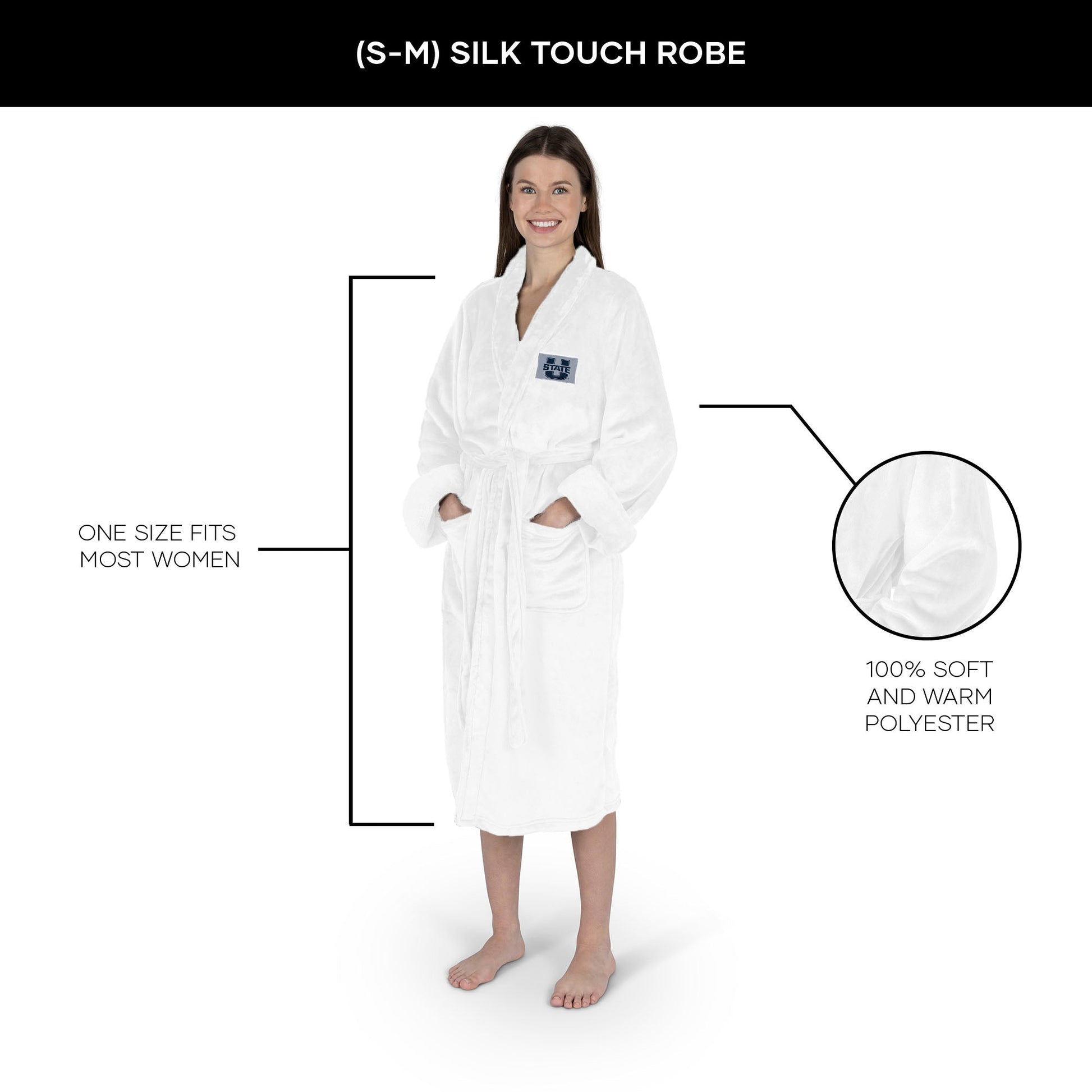 Wrap yourself in comfort and team pride with our NCAA Silk Touch Bathrobe. Made from incredibly silky-soft material, this robe provides a luxurious feel that¡¯s perfect for lounging or getting ready in style. It includes two front patch pockets for convenience, along with a tie belt and two belt loops on each side for a customized fit. Show your support for your favorite NCAA team with this officially licensed robe featuring their logo. Whether you¡¯re cheering from the couch or getting ready for game day, this robe is the perfect way to display your team spirit.