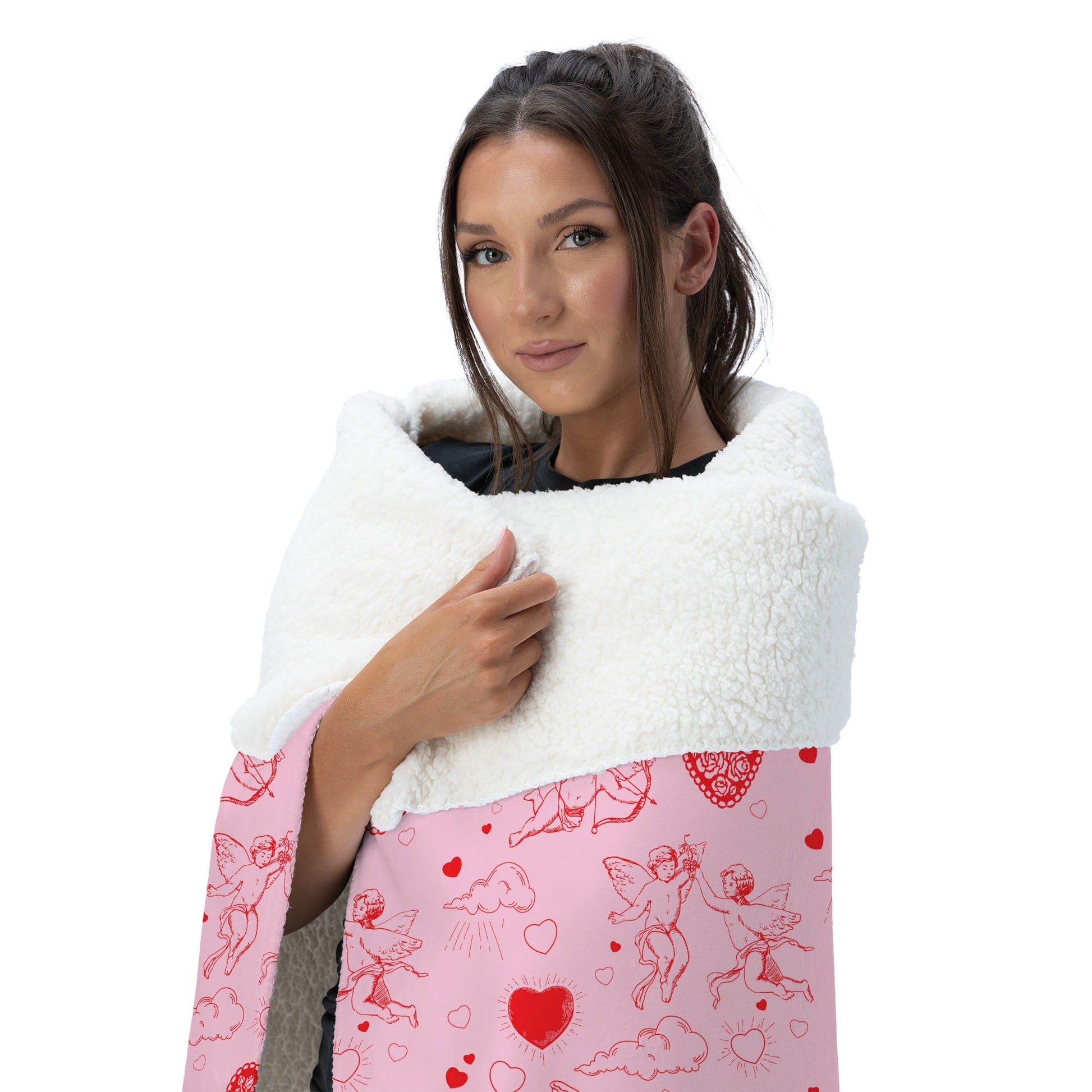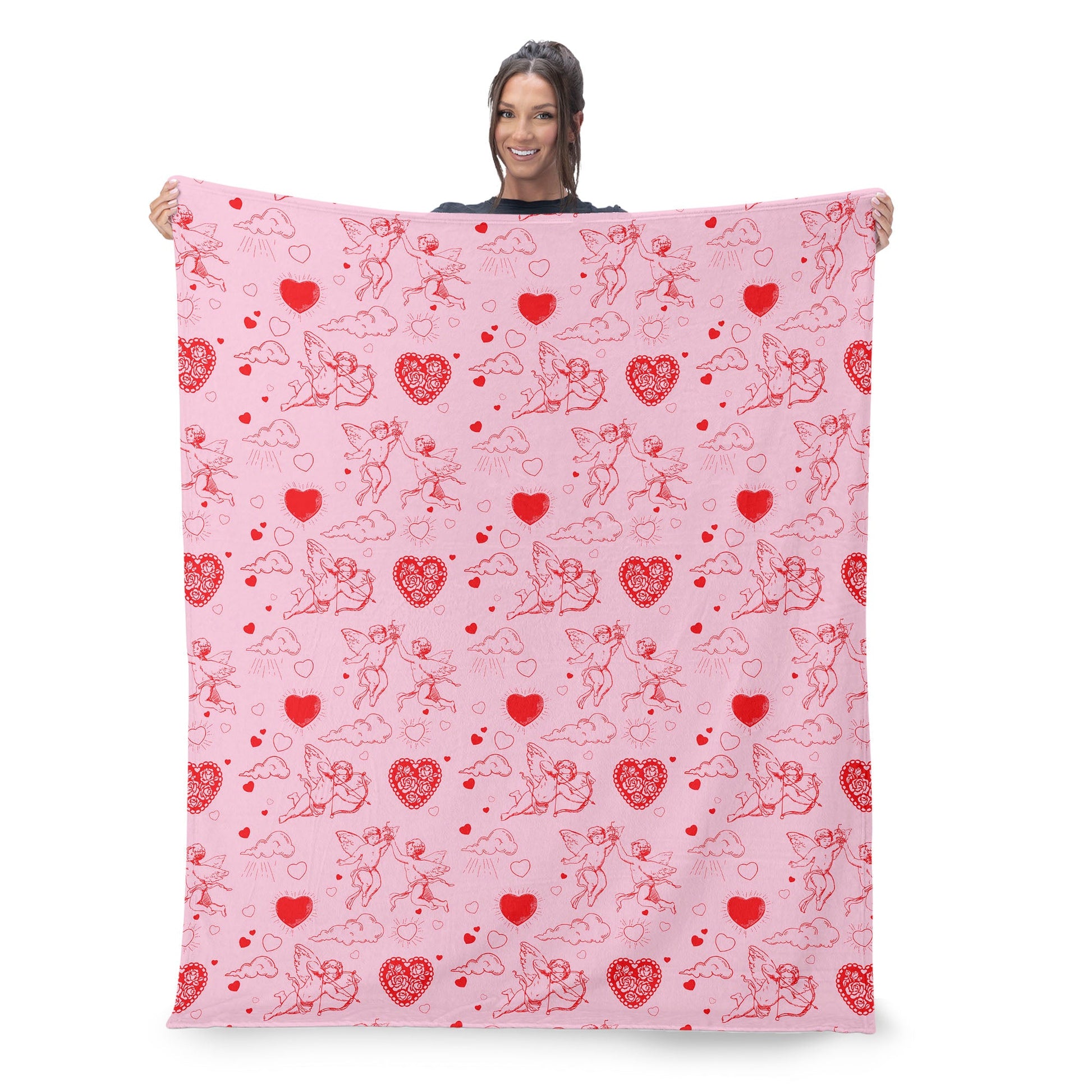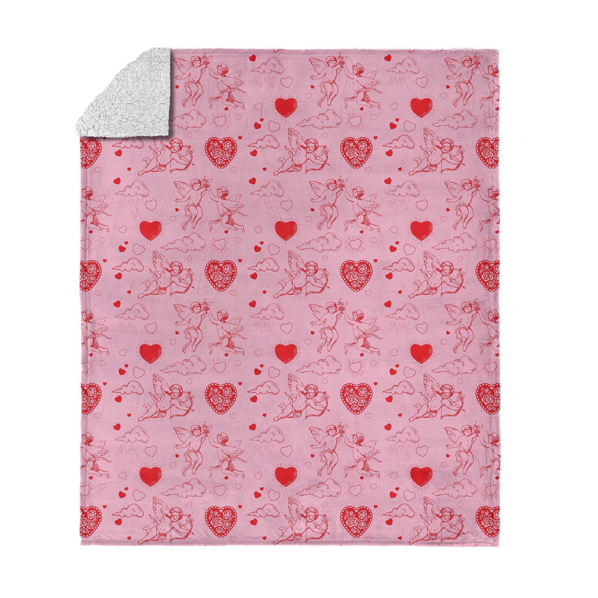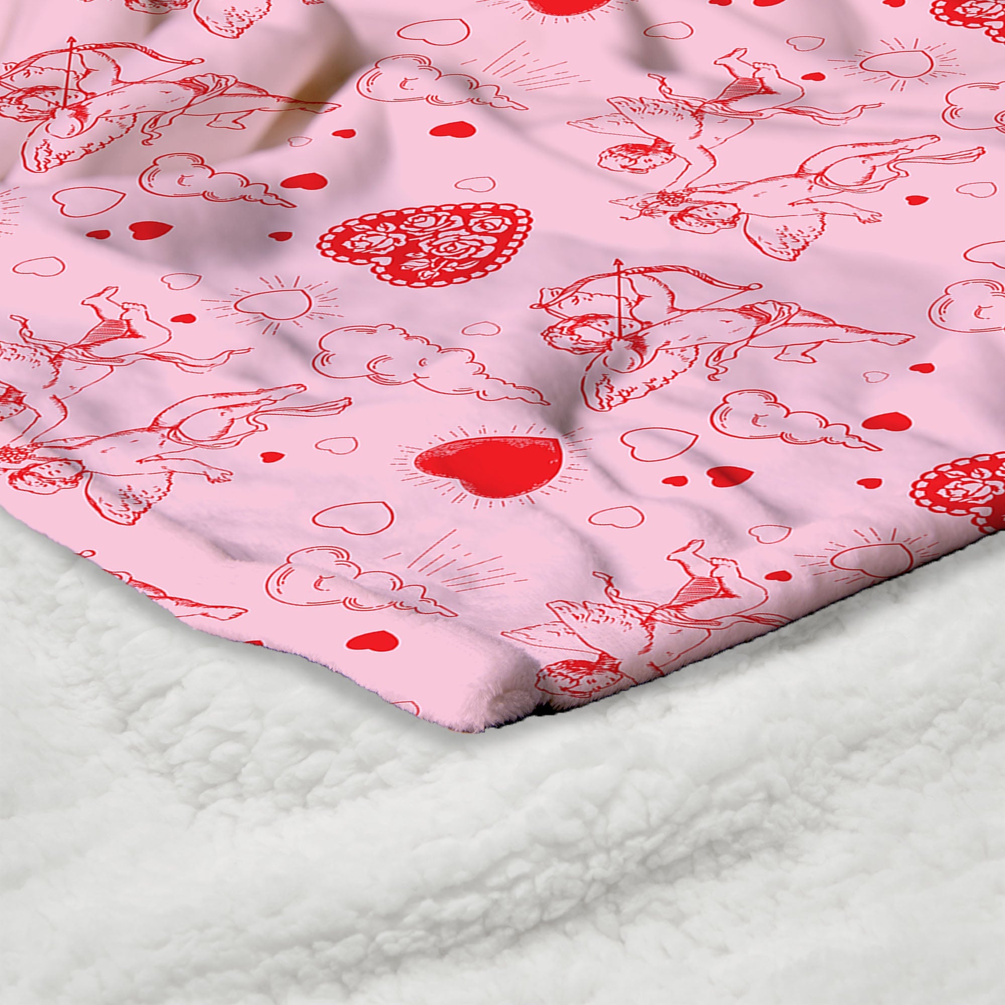 Let love take flight with this Valentine¡¯s Day ¡°Cupid¡± Silk Touch Sherpa Throw Blanket. A dreamy design featuring playful cupids, fluffy clouds, and vibrant red hearts dances across a soft pink background, creating a whimsical and romantic atmosphere. This throw combines elegance and charm, perfect for setting the tone of love in your home. Whether draped over a sofa or wrapped around you during a cozy evening, it adds a touch of festive delight that feels both stylish and heartwarming. Light, soft, and irresistibly cozy, this blanket transforms any space into a celebration of affection. Its delicate hues and charming pattern bring a sweet, loving vibe that¡¯s ideal for Valentine¡¯s Day and beyond.