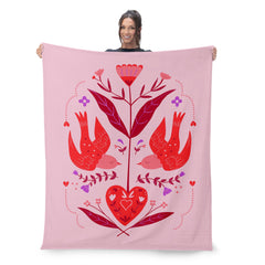 Add a whimsical touch to your home with this Valentine¡¯s Day ¡°Flying Birds¡± Silk Touch Throw Blanket. Featuring a delightful Nordic folk art design, it showcases birds, hearts, and flowers set against a soft pink background, bringing warmth and charm to any space. This blanket combines enchanting details with luxurious softness, making it a standout piece for relaxation or decor. Its playful yet elegant style enhances the mood of the season, creating an inviting atmosphere whether draped over a chair or tucked in for a cozy evening. Perfect for adding a bit of folk art-inspired beauty, this throw blanket makes every moment feel special. Its timeless design ensures it remains a favorite for Valentine¡¯s Day and beyond.