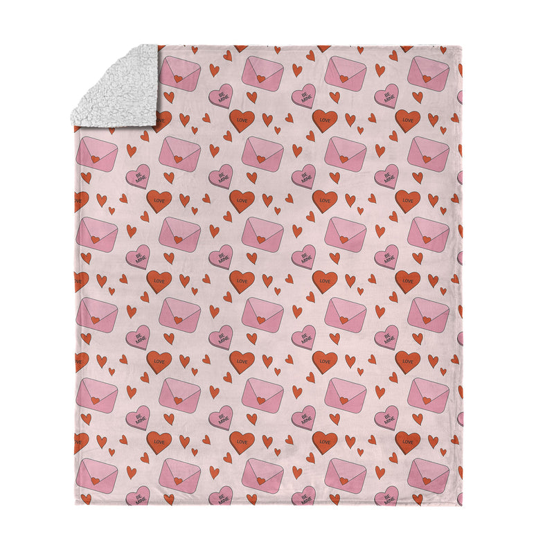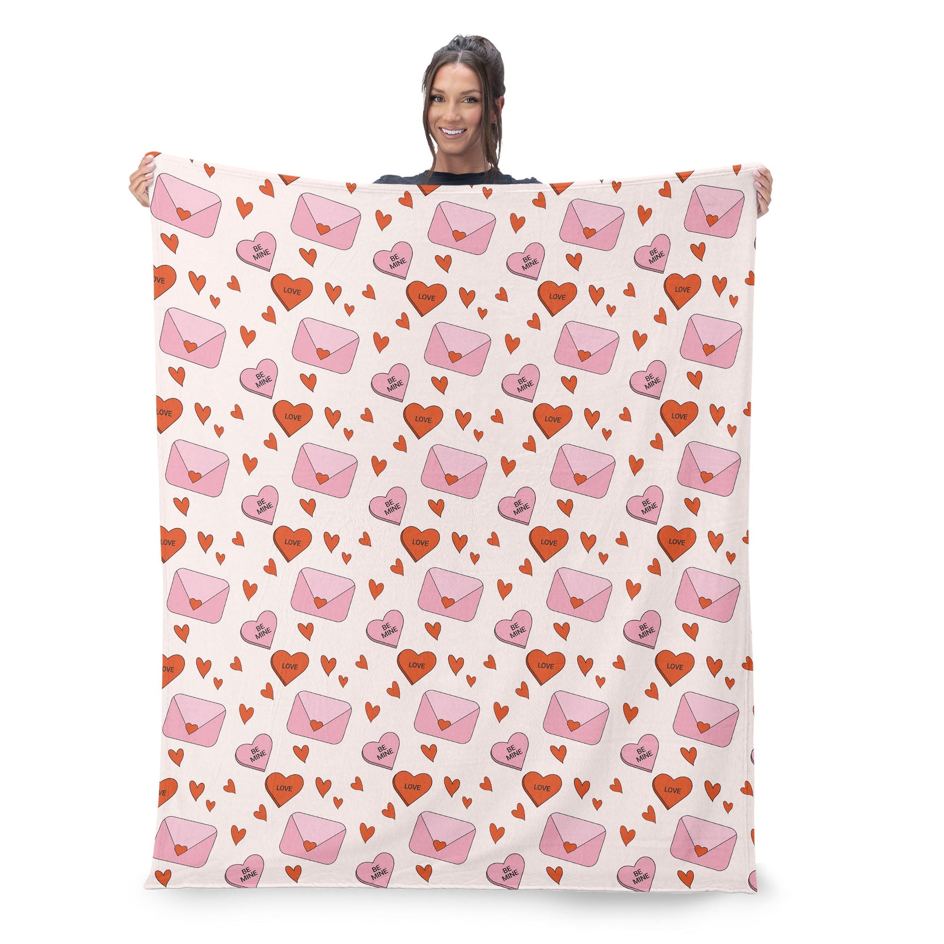 Love and sweetness fill every inch of the Valentine¡¯s Day ¡°Send My Love¡± Silk Touch Sherpa Throw Blanket. A delightful pattern of Valentine candy hearts, red hearts, and pink envelopes creates a playful design perfect for sharing affection and warmth. This cozy throw brings a charming touch to any room with its vibrant colors and cheerful symbols of love. Whether draped over a couch or snuggled up with on chilly evenings, it¡¯s a wonderful way to express the spirit of the season. Soft and smooth to the touch, it¡¯s both stylish and functional, making it a heartfelt gift or a delightful addition to your own home decor.