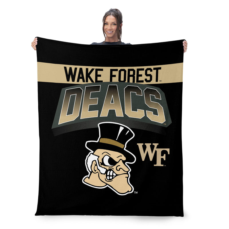 You'll never get cold cheering on your favorite team with this Wake Forest Silk Touch Sherpa Throw Blanket. Showcasing the team¡¯s bold logo and signature colors, this throw is designed to make a statement while keeping you comfortable during every game, study group, or lounging session. The luxurious Silk Touch front and soft Sherpa back combine to create an incredibly plush and comfortable blanket that you won¡¯t want to put down.