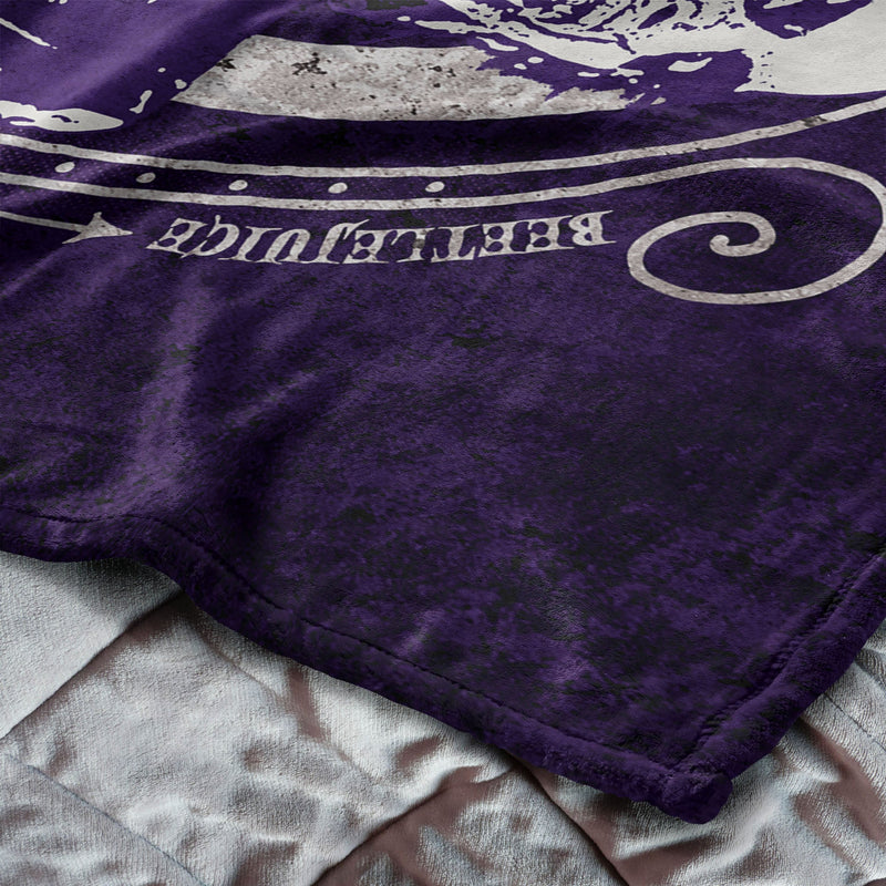 Dive into the bizarre and spooky world of Beetlejuice with this ¡°Big Dark Room¡± Silk Touch Throw Blanket. Featuring a graphic illustration of Beetlejuice and the Sandworm, the design pops in eerie tones of deep purple, black, and grey. The mischievous character and his slithering companion are captured in a chilling, yet playful scene that fans of the film will instantly recognize. The bold colors and haunting imagery make this pillow a unique and eye-catching piece for any space. Whether it¡¯s on a couch, bed, or chair, the dark, detailed design will add a touch of creepy charm to your decor. It¡¯s a great way to bring a little spooky fun to your home, while celebrating the strange and supernatural.