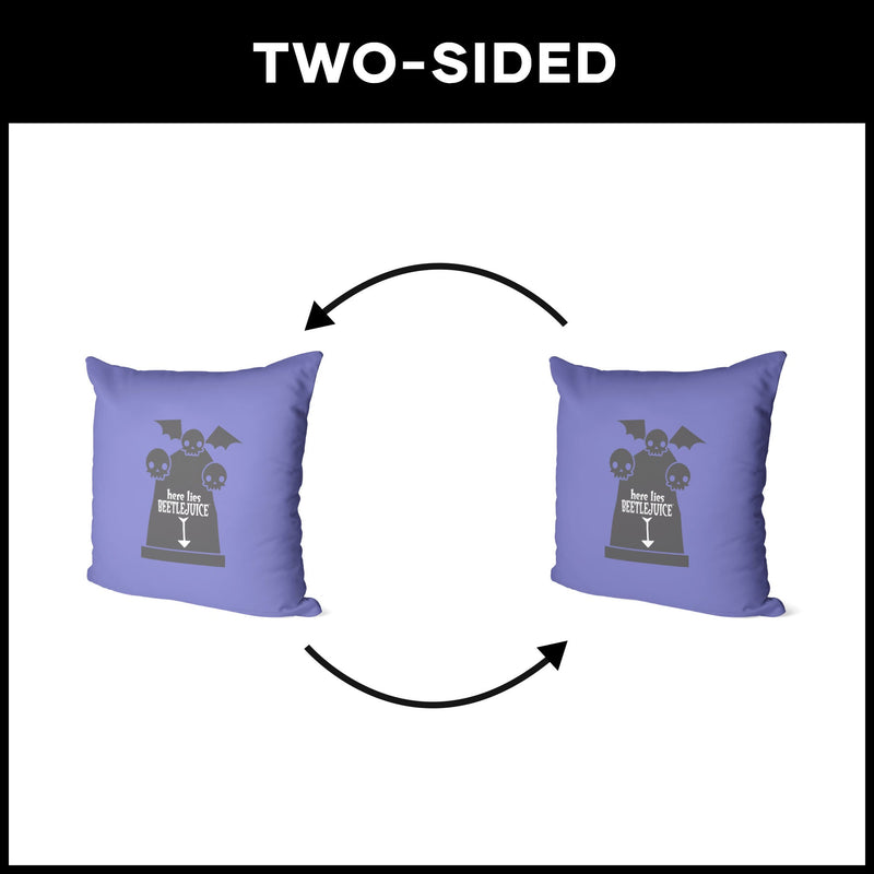 Add a touch of whimsical spookiness to your decor with the Beetlejuice ¡°Here Lies Beetlejuice¡± Throw Pillow. This striking piece features a bold black graphic of Beetlejuice¡¯s iconic headstone against a vibrant background, perfectly capturing the film¡¯s quirky charm. It¡¯s a playful nod to the mischievous spirit of the beloved ghost with the most. The soft fabric makes it an inviting addition to your couch, bed, or favorite reading nook, providing a cozy spot to lean against as you dive into the bizarre world of Beetlejuice. Whether you¡¯re decorating for Halloween or simply want to infuse your space with a hint of the macabre, this throw pillow is a perfect choice. Its unique design and vibrant colors make it an essential accessory for fans of the film, bringing a bit of Beetlejuice¡¯s delightful chaos into your home.
