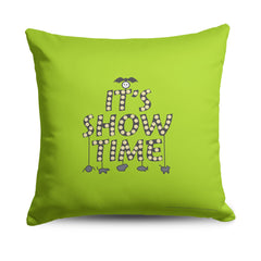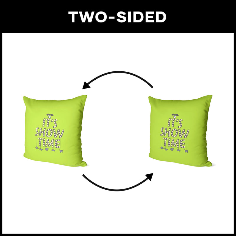 ? Features marquee lights spelling out "It's Show Time" against a lively green background