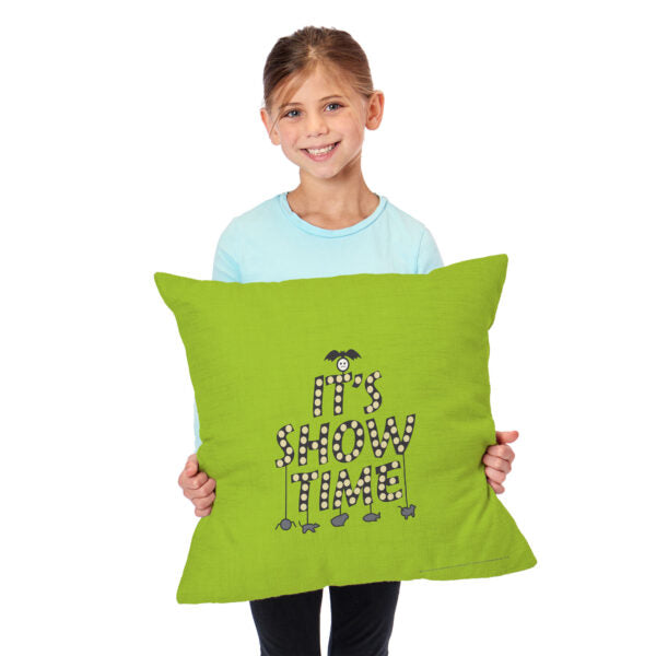 Add a dash of theatrical flair to your decor with the Beetlejuice ¡°It¡¯s Showtime¡± Throw Pillow. This vibrant piece features marquee lights spelling out ¡°It¡¯s Show Time¡± against a lively green background, perfectly capturing the playful and eccentric spirit of the beloved film. It¡¯s an eye-catching nod to the iconic scenes that have made Beetlejuice a classic. The soft fabric makes it a delightful addition to any seating area, inviting you to relax as you enjoy your favorite spooky flicks or entertain friends with tales of the bizarre. Its fun design adds personality to your living space, making it a fantastic conversation starter. Whether placed on a sofa, bed, or accent chair, the ¡°Into The Afterlife¡± pillow serves as a lively tribute to the film, making it a must-have accessory for those who cherish the quirky charm of Beetlejuice.