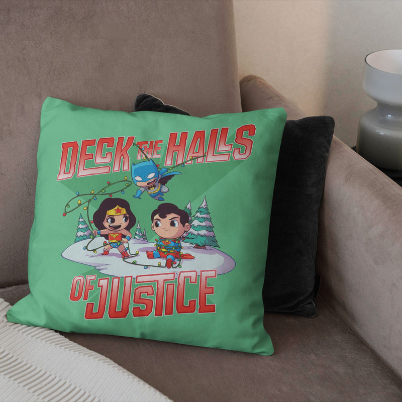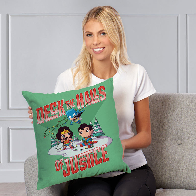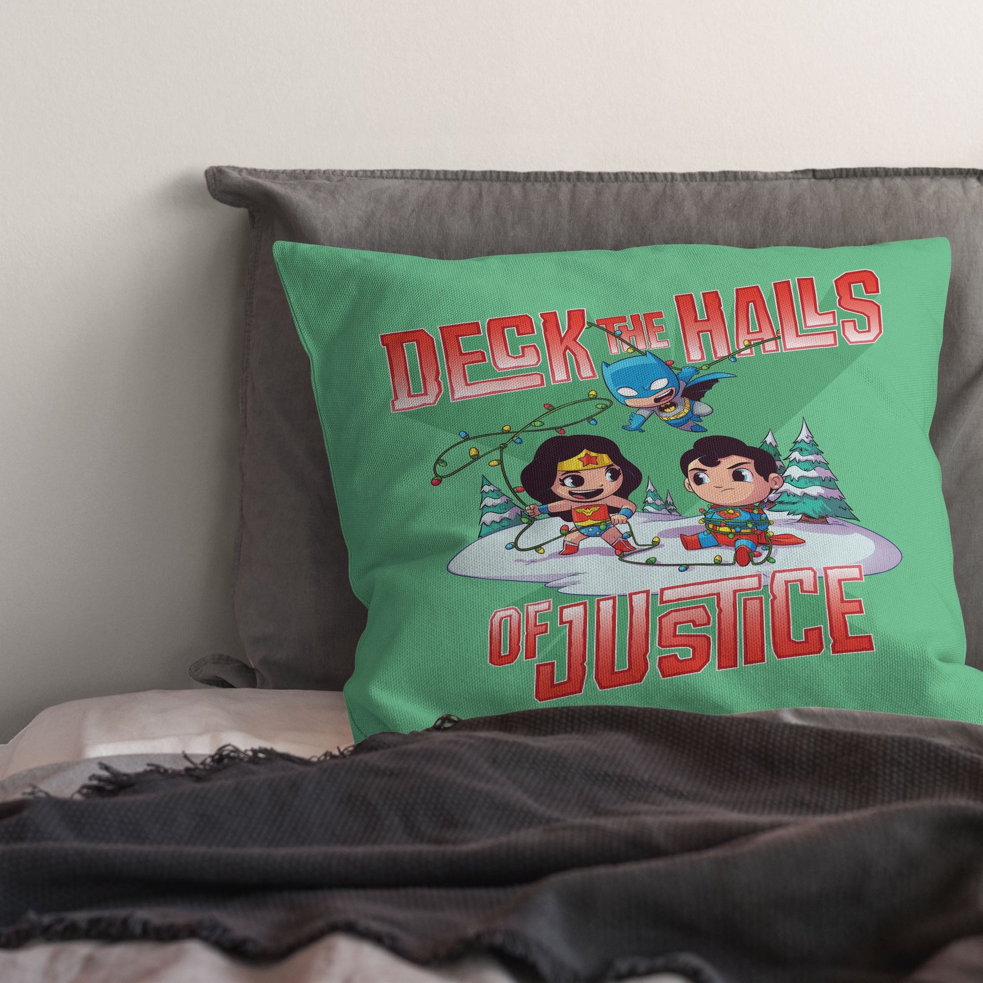 Warner Bros. Justice League Deck the Halls of Justice Throw Pillow 18x18 Inches