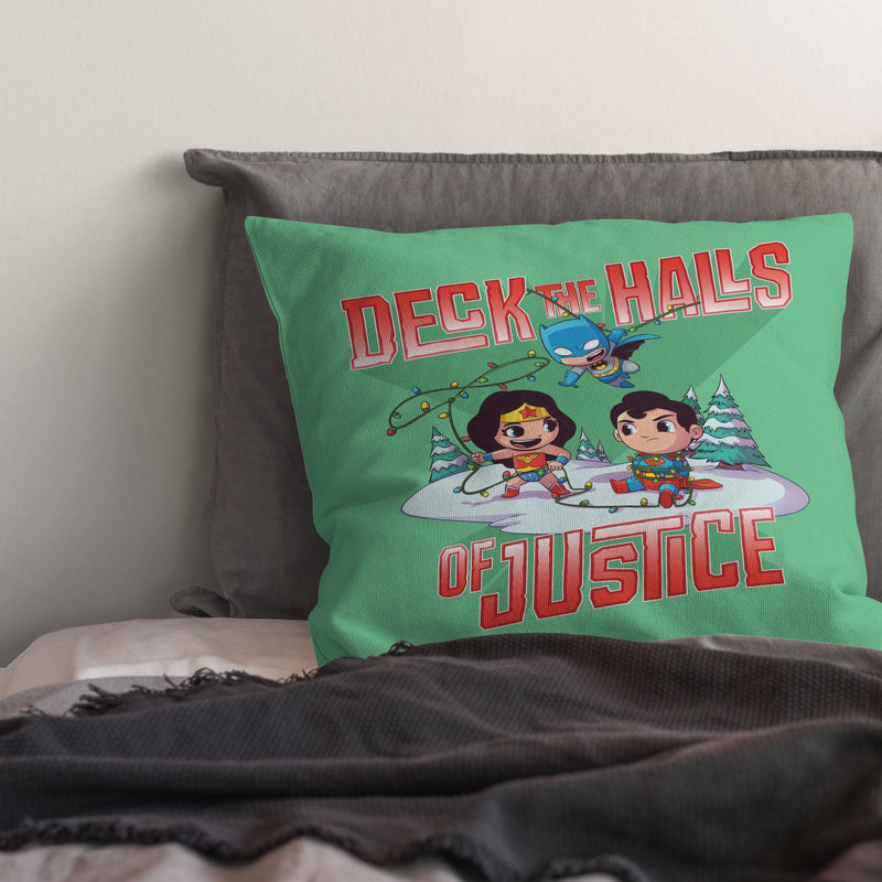 Meet the ultimate comfort companion for every DC fan with this Warner Bros. Justice League "Deck the Halls" Pillow. Whether placed on your sofa, bed, or favorite armchair, this pillow invites you to kick back and enjoy the comfort of your favorite DC superheroes always at your side. A must-have for any true DC enthusiast.