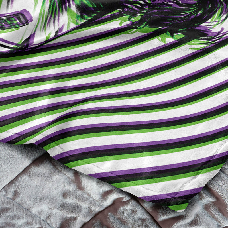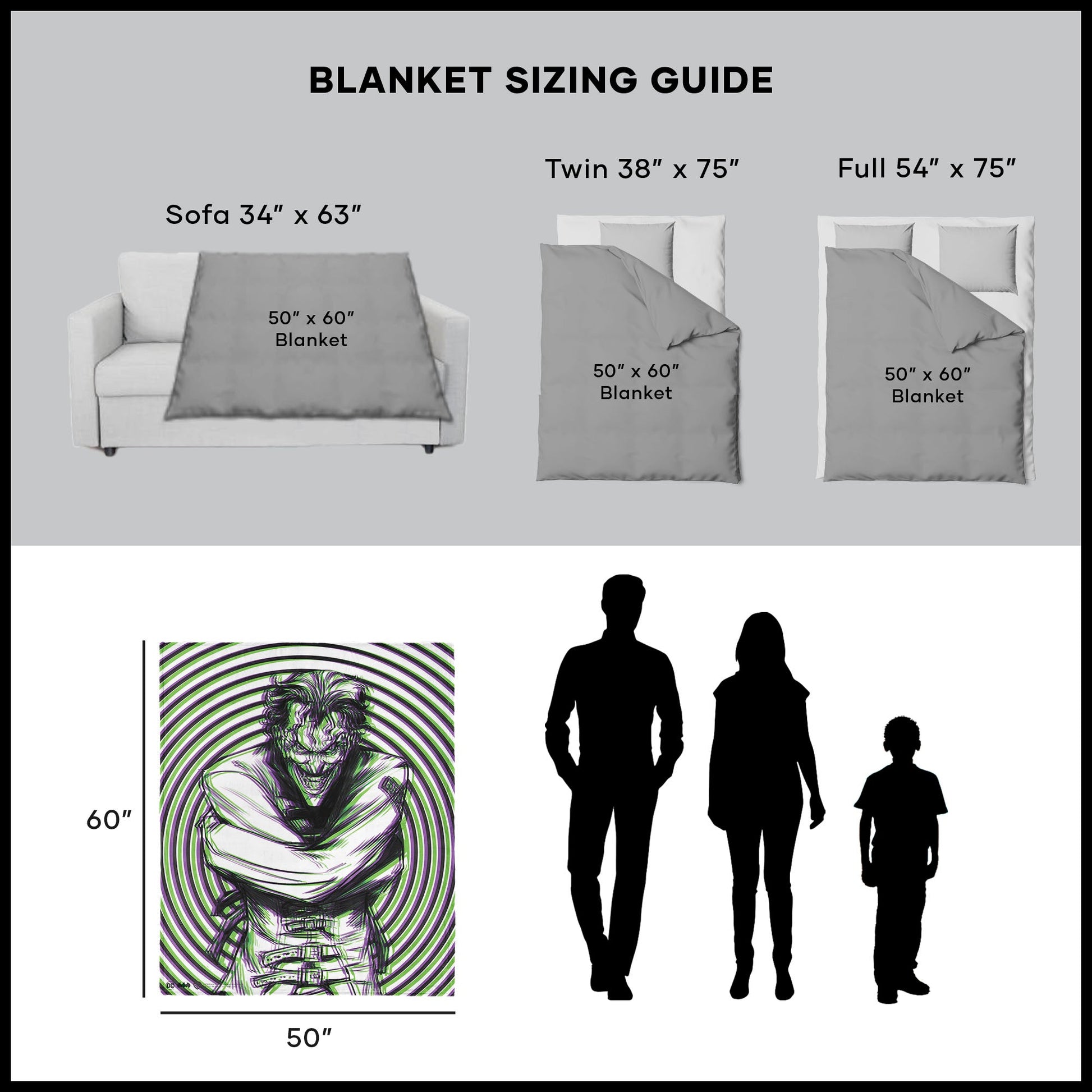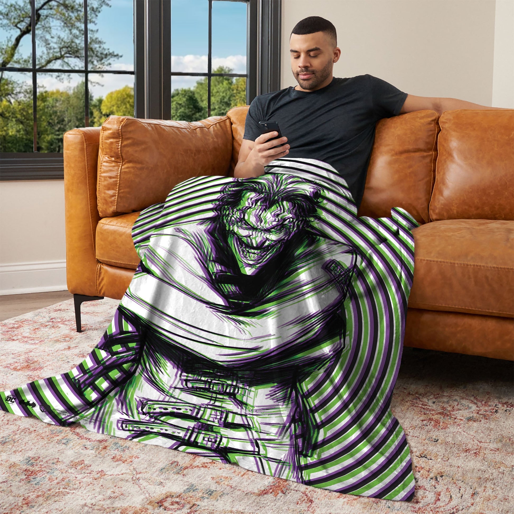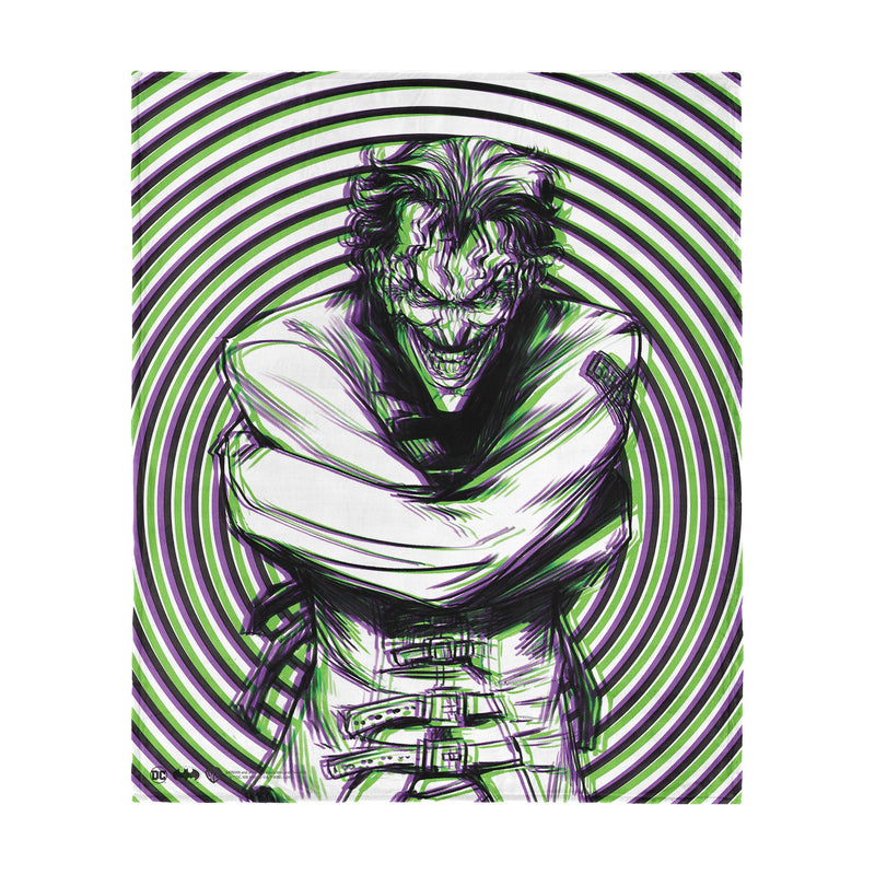 Embrace the chaos with the DC Laughing Man Silk Touch Throw Blanket. Featuring an electrifying design of the Joker in a straitjacket, drawn with dynamic purple, green, and black lines, it captures the essence of Gotham¡¯s most notorious villain. Crafted from ultra-soft silk-touch fabric, this blanket offers lightweight warmth and a luxurious feel. Perfect for curling up during a movie night or adding a bold statement to your decor, it brings an edgy, artistic flair to any space. A must-have for fans of the Joker¡¯s unique brand of madness, this throw combines comfort and style in equal measure. Let it serve as a reminder that a little chaos can go a long way.