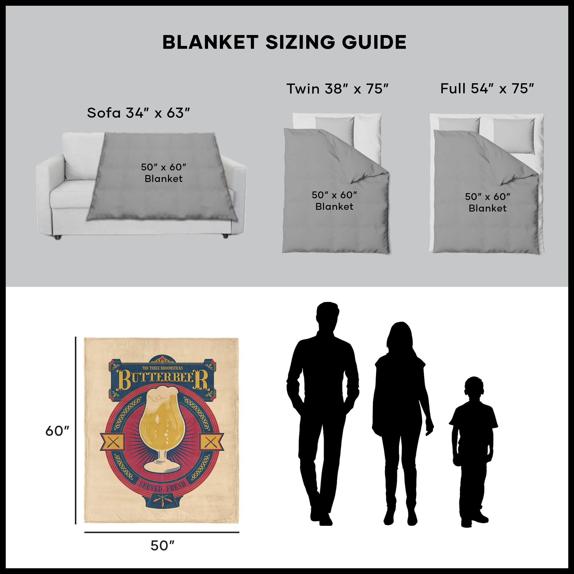 Immerse yourself in the warmth and charm of the Wizarding World with the Warner Bros. Harry Potter "Served Fresh" Silk Touch Throw Blanket. Showcasing a beautifully detailed representation of the Three Broomsticks Butterbeer sign, this cozy throw brings the cozy atmosphere of Hogsmeade¡¯s favorite inn right into your home. Perfect for Harry Potter fans, it adds a magical touch to any space. Crafted from ultra-soft silk touch fabric, this blanket delivers luxurious comfort while remaining lightweight and easy to snuggle with. The rich colors and high-quality print ensure the Three Broomsticks Butterbeer sign stands out, making it a stunning decorative piece as well as a functional one. Whether draped over a chair, displayed in a themed room, or used for cozying up during a movie marathon, it¡¯s designed to enchant. A must-have for any Harry Potter enthusiast, this throw blanket makes a fantastic gift for fans of all ages. Whether reminiscing about trips to Hogsmeade or simply looking for the perfect cozy companion, it captures the essence of Butterbeer and the warmth of the wizarding world. Wrap yourself in magic and let the Three Broomsticks spirit bring comfort to every moment.