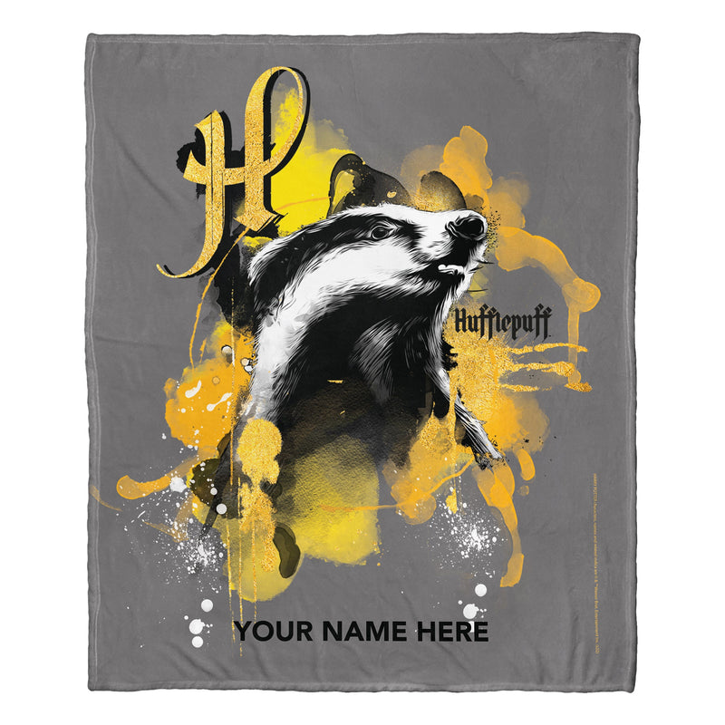 Warner Bros. Harry Potter Watercolor Hufflepuff Personalized Silk Touch Throw Blanket 50x60 Inches