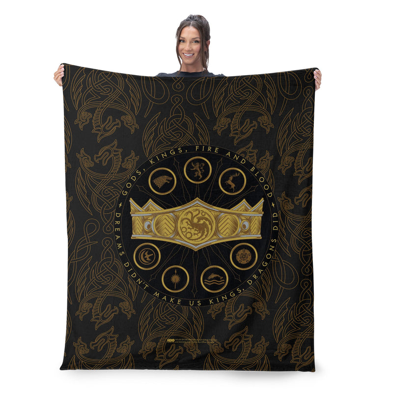 Honor the legacy of House Targaryen with the House of the Dragon ¡°Dragons Did¡± Silk Touch Sherpa Throw Blanket. Featuring the iconic crown and sigils, this design captures the essence of fire and blood, evoking the power of the dragonlords. This blanket offers a smooth texture and lightweight warmth, making it perfect for cozy nights or as a bold accent to your space. Its detailed imagery adds depth and drama, transporting you to the world of Westeros. A must-have for fans of House Targaryen, this throw blends comfort with striking style. Bring the spirit of dragons into your home and showcase your love for the epic tales of House of the Dragon.