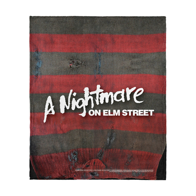 Celebrate the iconic horror of A Nightmare on Elm Street with the Freddy Krueger ¡°Sweater¡± Silk Touch Throw Blanket. This striking design showcases Freddy¡¯s infamous striped sweater alongside the chilling movie logo, capturing the essence of the classic slasher film. It¡¯s a perfect homage to the character that has haunted dreams for generations. Perfect for those late-night horror movie marathons or just curling up on the couch, it provides warmth and comfort while adding a touch of frightful flair to your space. The quality craftsmanship ensures it remains a staple in your collection for years to come. Ideal for display or practical use, this throw blanket brings the thrill of Freddy Krueger right into your living room or bedroom. Whether draped over a chair, used as a bedspread, or cozying up with during a spooky movie night.