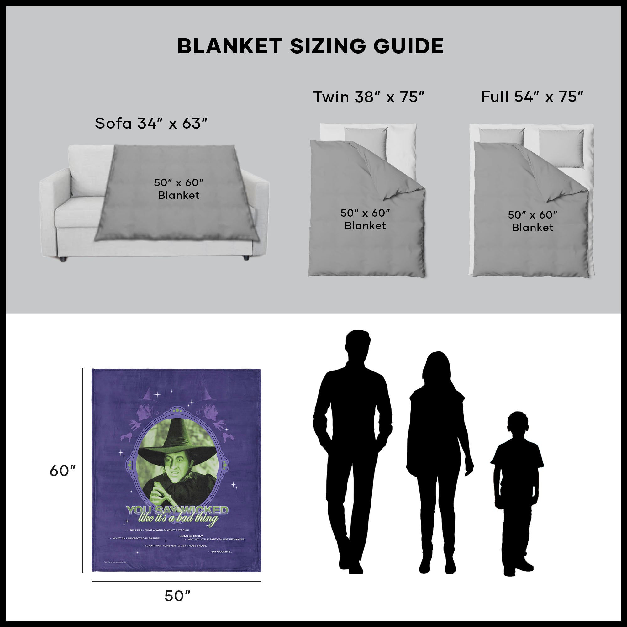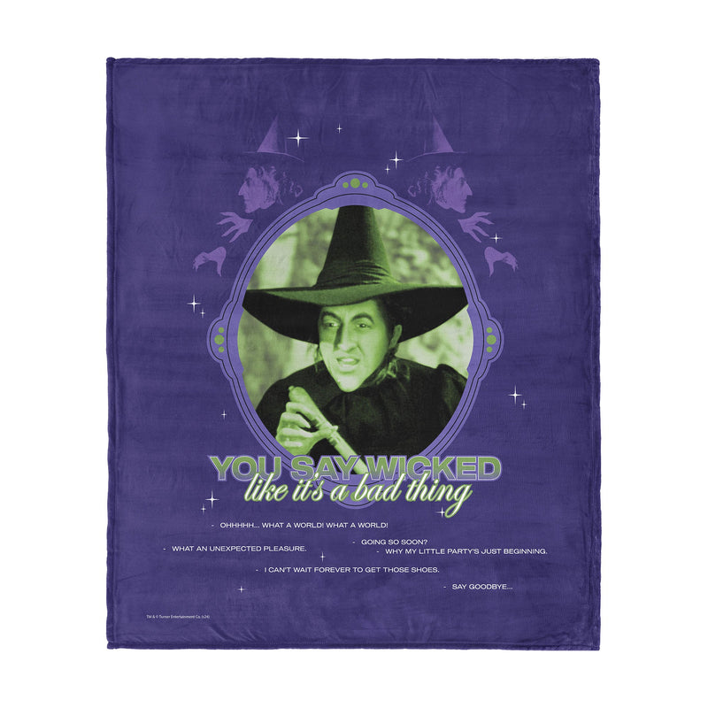 ? Featuring the iconic Wicked Witch in all her glory, this blanket showcases some of her most famous lines beneath her fierce image.