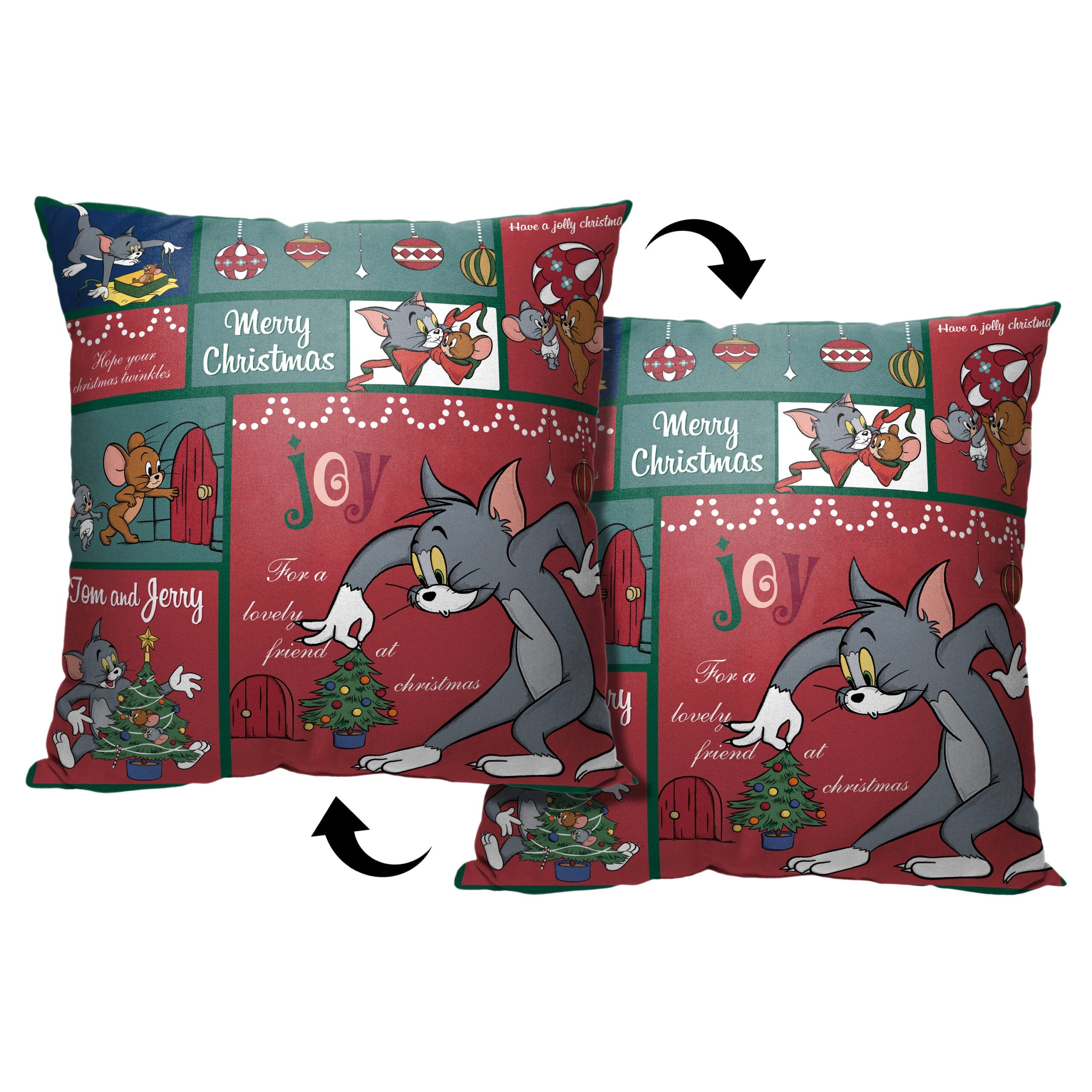 Warner Bros. Tom And Jerry Christmas Compliation Throw Pillow 18x18 Inches