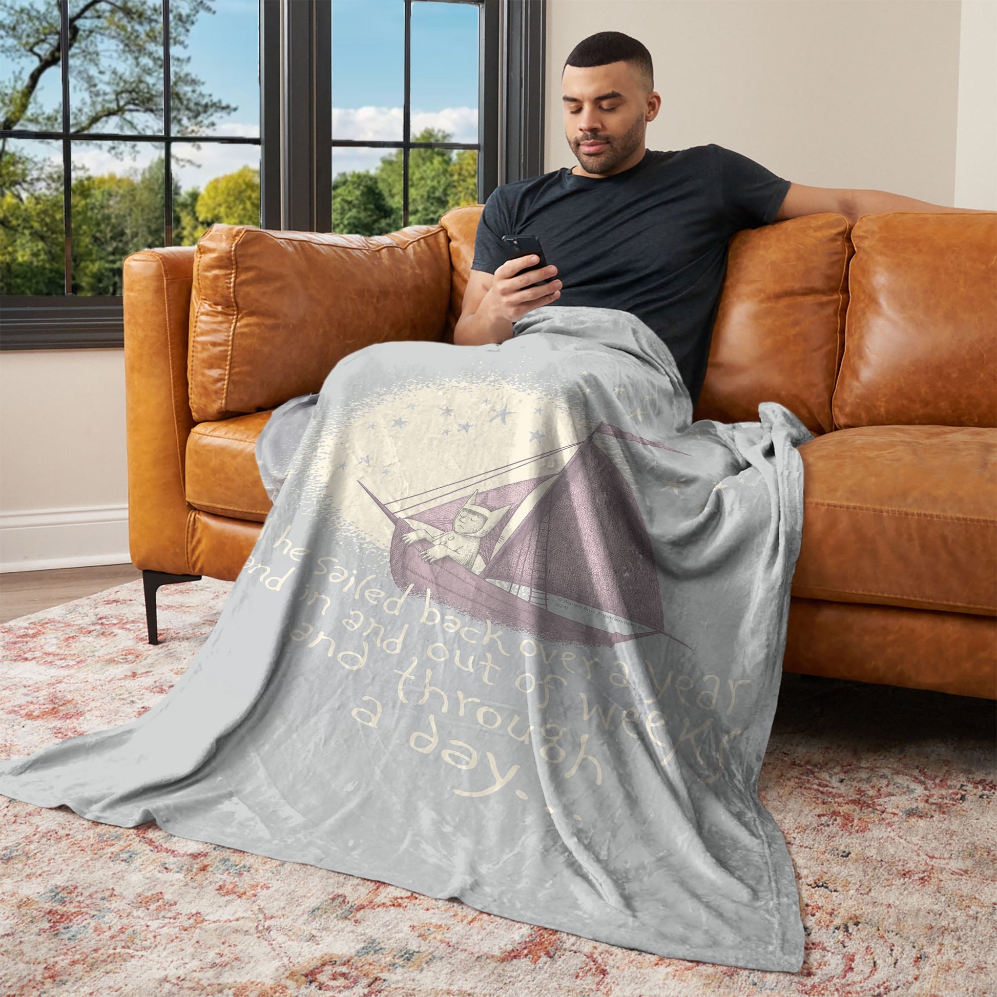 Set sail on an unforgettable adventure with the Where the Wild Things Are ¡°He Sailed¡± Silk Touch Throw Blanket. Featuring Max in his iconic sailboat, this design captures the spirit of curiosity and exploration that defines his journey. Crafted from ultra-soft silk-touch fabric, this blanket offers a cozy, lightweight warmth perfect for quiet moments or adding a whimsical touch to your decor. The rich, detailed artwork brings Max¡¯s story to life, making it a must-have for fans of the classic tale. Whether you¡¯re reliving childhood memories or sharing the magic of Max¡¯s adventures with a new generation, this throw is the perfect way to keep the wild in your heart alive. Let it transport you to where the wild things are.