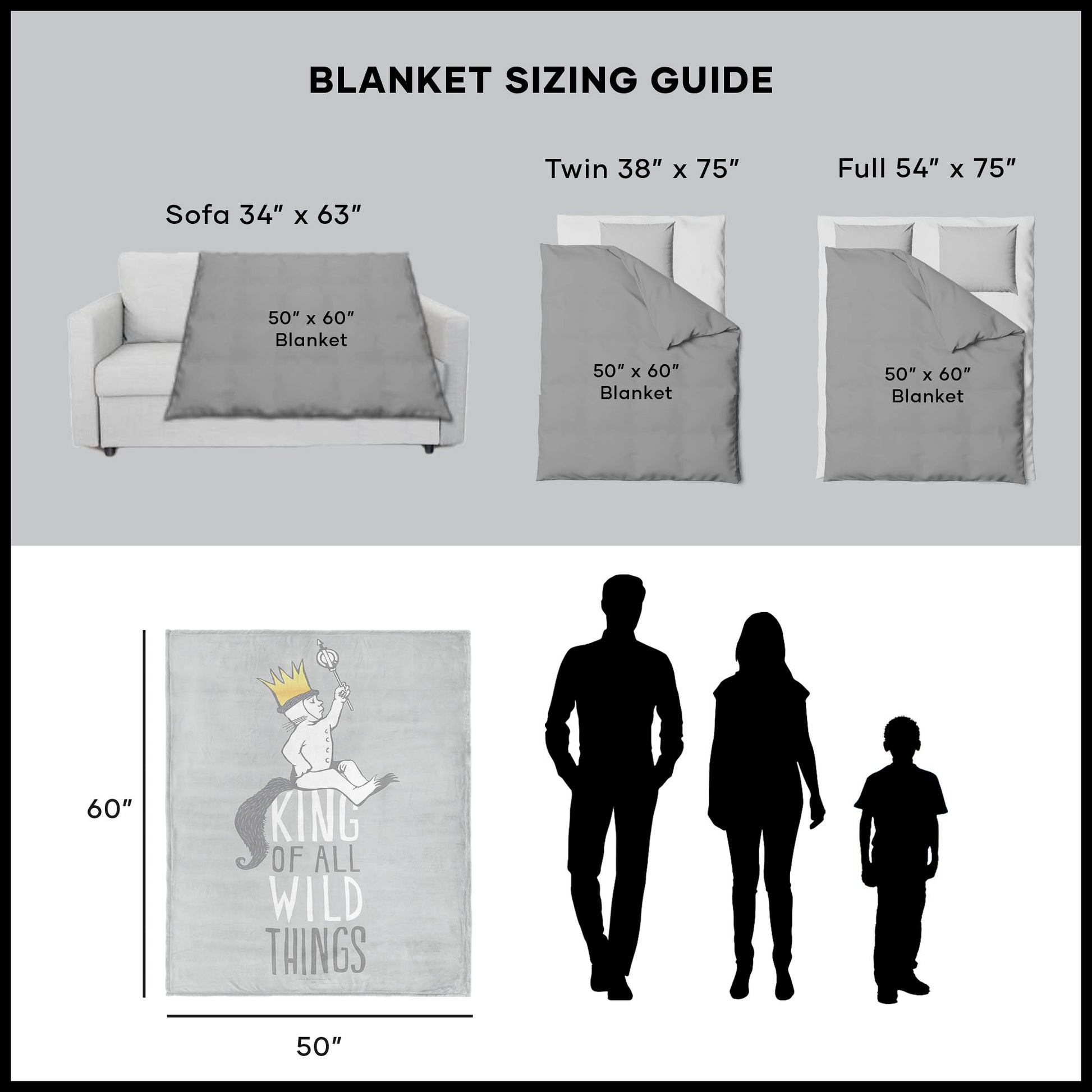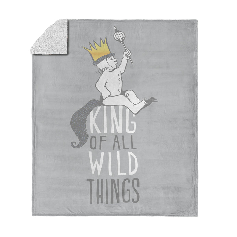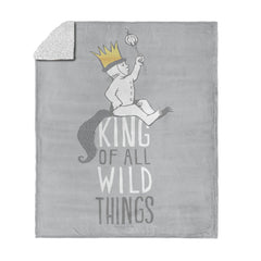 Bring the magic of Where the Wild Things Are into your home with the ¡°King of All¡± Silk Touch Sherpa Throw Blanket. Featuring Max perched atop bold, stacked words declaring him the ¡°King of All Wild Things,¡± this design captures the playful spirit of his reign. With its ultra-soft texture and eye-catching artwork, this throw is perfect for adding warmth and a whimsical touch to any room. The bold typography and Max¡¯s iconic pose make it a standout piece that fans of the beloved story will adore. Whether for cozying up during a favorite read or as a decorative accent, this blanket invites the adventurous charm of Max¡¯s world into your daily life. Keep the wildness alive and let your imagination rule.
