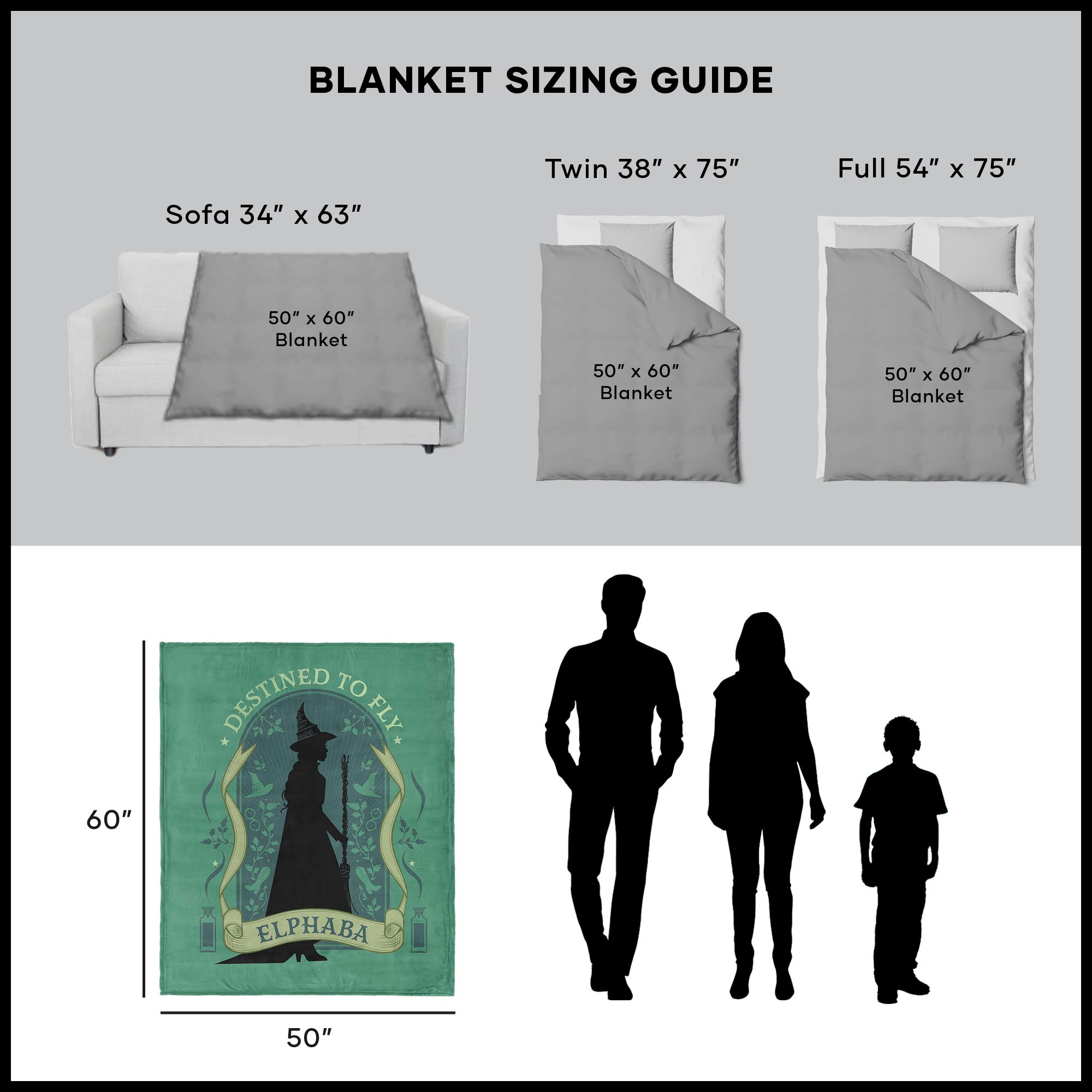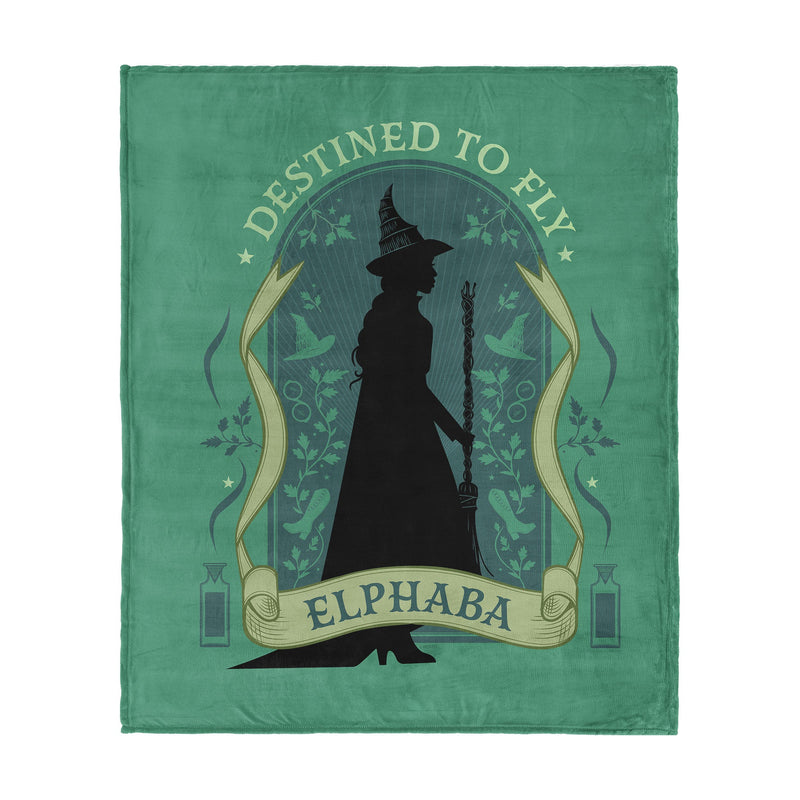 Soar to new heights with the Universal Wicked ¡°Destined to Fly¡± Silk Touch Throw Blanket, featuring a striking silhouette of Elphaba in her iconic hat and cloak, framed by magical flying shoes, leafy vines, potion bottles, and a bold banner that proudly declares her name. Inspired by the empowering journey of Wicked¡¯s most famous witch, this blanket brings a sense of courage and independence to any space, reminding you to embrace your own destiny with every cozy moment. Drape it over your couch, bed, or favorite reading nook to add a touch of emerald enchantment and let your imagination take flight while you stay wrapped in silky-soft comfort.