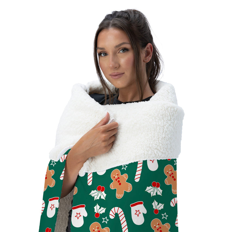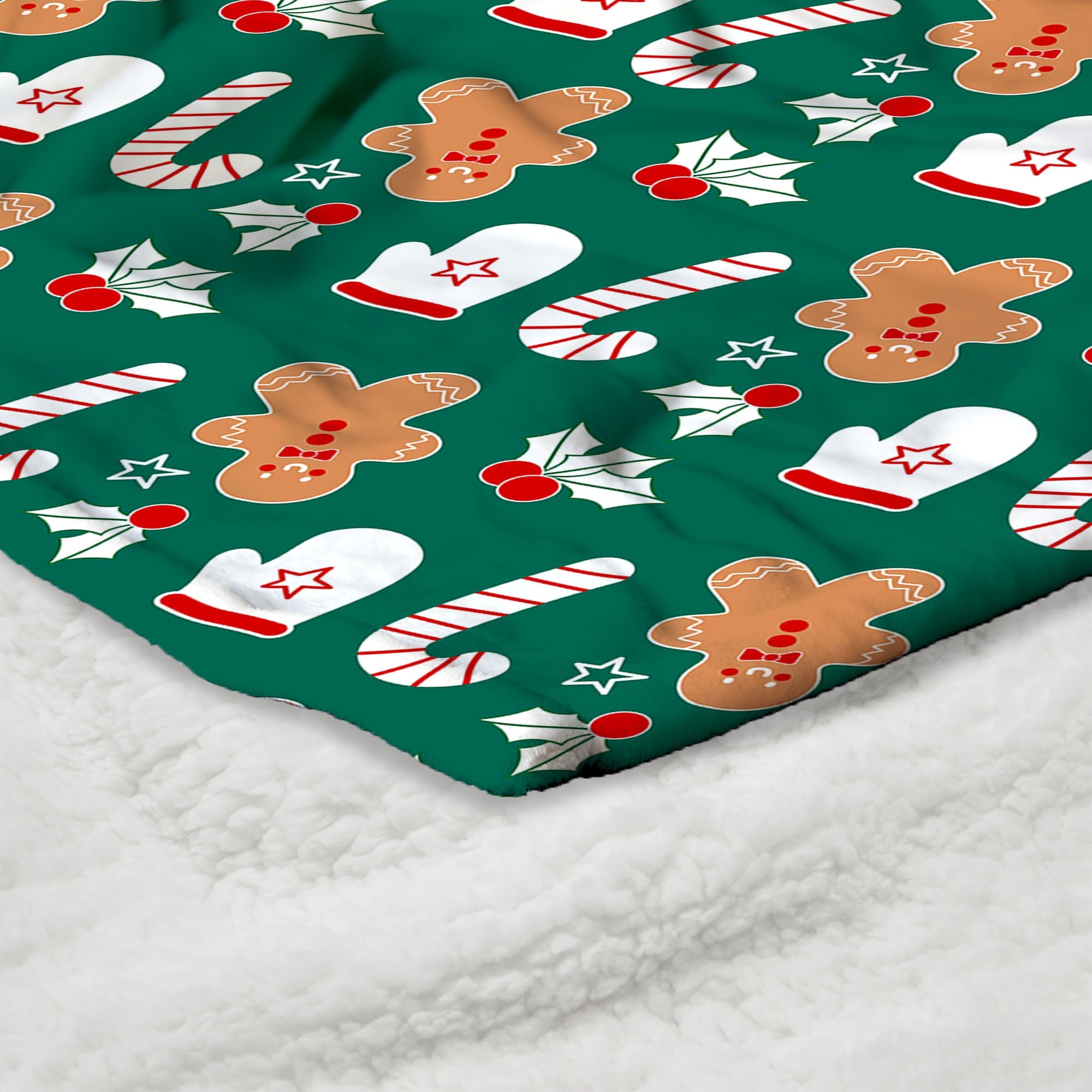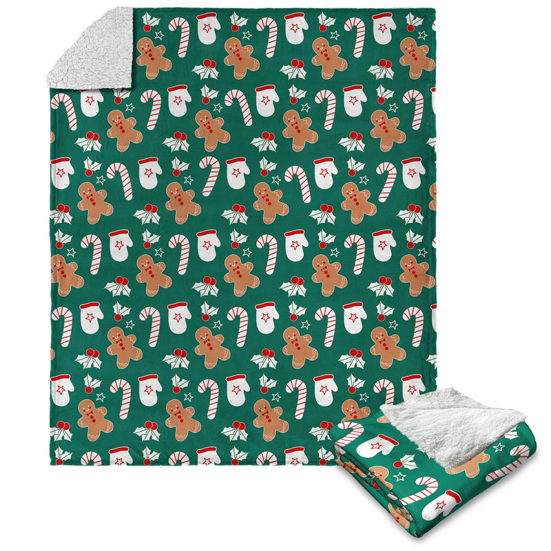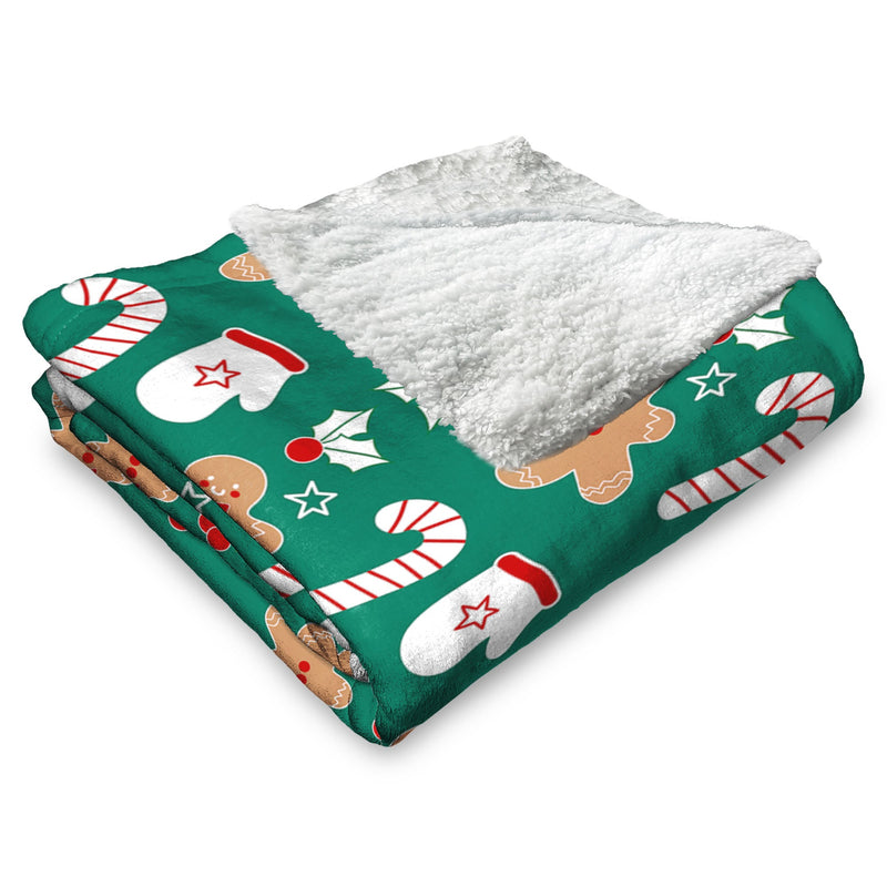Celebrate the holiday season with the Xmas Pattern Silk Touch Sherpa Throw Blanket, featuring a playful design of mistletoe, candy canes, gingerbread men, and mittens on a vibrant green background. This cozy throw captures the magic of Christmas with its festive, whimsical pattern, perfect for getting into the holiday spirit. Each cheerful element in the design adds to the charm, from the classic candy canes to the adorable gingerbread men and cozy mittens. Whether draped over your couch or used as an extra layer on your bed, it instantly brightens any room and creates a warm, inviting atmosphere. Its fun holiday pattern and smooth texture make it a favorite for both decorating and relaxing during the most wonderful time of the year.