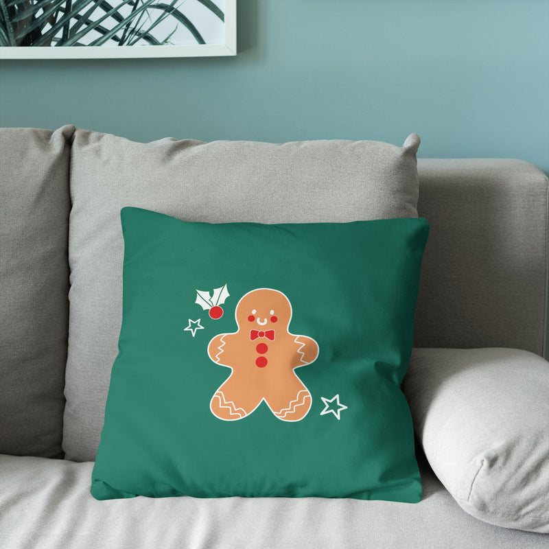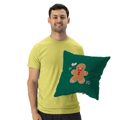Celebrate the holidays with the Xmas Pattern Throw Pillow, featuring a charming gingerbread man surrounded by mistletoe and stars on a festive green background. This playful design brings a cheerful touch to your holiday d¨¦cor, perfect for creating a cozy and inviting space. The vibrant green backdrop and delicate holiday details make this pillow a delightful accent for your couch, chair, or bed. Whether you're decorating for a holiday party or simply enjoying a quiet evening at home, its joyful design helps set the perfect festive mood. Its fun gingerbread and mistletoe pattern adds a whimsical touch to your space, making it a favorite piece for the season.